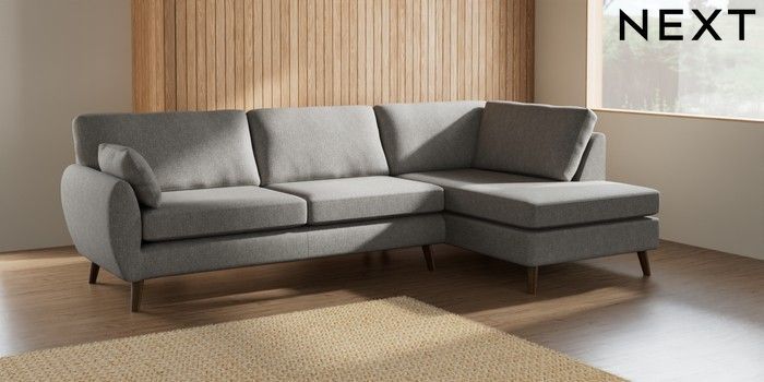 7.3.1 Buy Wilson Large Corner Chaise - Right Hand Tweedy Chenille Mid Grey Retro Tapered - Mid from the Next UK online shop Click here to use our accessible website