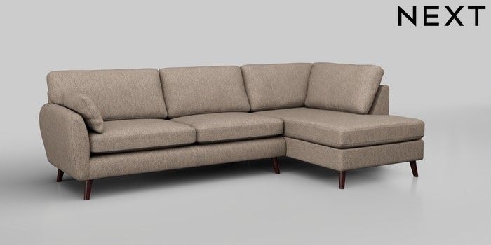6.12.1 Buy Wilson Large Corner Chaise - Right Hand Tweedy Chenille Mid Natural Retro Tapered - Dark Brown from the Next UK online shop Click here to use our accessible website