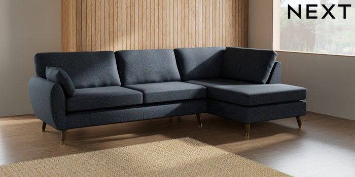 7.3.1 Buy Wilson Large Corner Chaise - Right Hand Tweedy Chenille Navy Blue Low Retro Tapered Metal Cap - Mid from the Next UK online shop