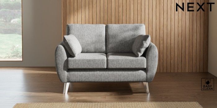 7.2.10 Buy Wilson 2 Seater Small Sofa Chunky Boucle Easy Clean Light Grey Metal Tapered - Chrome from the Next UK online shop Click here to use our accessible website