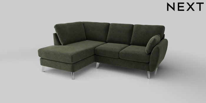 6.12.1 Buy Wilson Medium Corner Chaise - Left Hand Boucle Chenille Dark Moss Green Metal Tapered - Chrome from the Next UK online shop Click here to use our accessible website