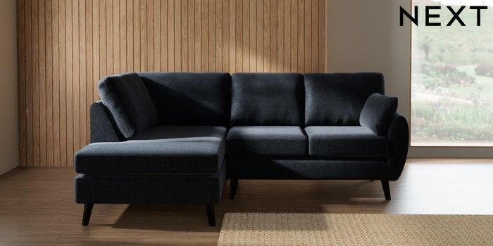 7.3.1 Buy Wilson Medium Corner Chaise - Left Hand Boucle Chenille Dark Slate Blue Retro Tapered - Dark from the Next UK online shop