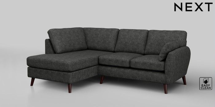 6.12.1 Buy Wilson Medium Corner Chaise - Left Hand Boucle Weave Easy Clean Charcoal Grey Retro Tapered - Dark Brown from the Next UK online shop Click here to use our accessible website