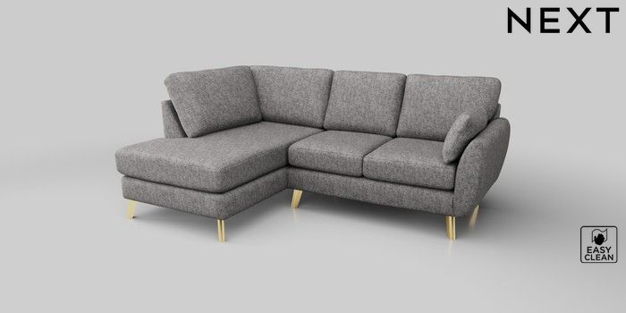 6.12.1 Buy Wilson Medium Corner Chaise - Left Hand Chunky Boucle Easy Clean Light Grey Metal Tapered - Gold from the Next UK online shop Click here to use our accessible website