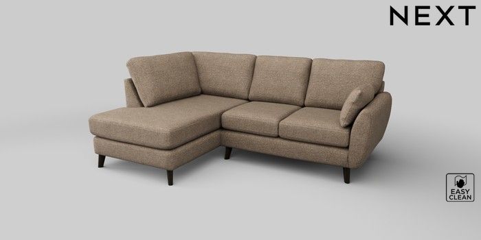 6.12.1 Buy Wilson Medium Corner Chaise - Left Hand Chunky Boucle Easy Clean Mid Natural Retro Tapered - Dark from the Next UK online shop Click here to use our accessible website