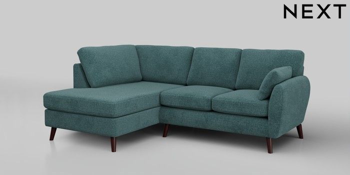 6.12.1 Buy Wilson Medium Corner Chaise - Left Hand Chunky Chenille Mid Teal Green Retro Tapered - Dark Brown from the Next UK online shop Click here to use our accessible website