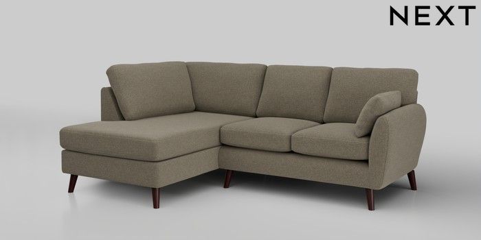 6.12.1 Buy Wilson Medium Corner Chaise - Left Hand Chunky Marl Light Olive Green Retro Tapered - Dark Brown from the Next UK online shop Click here to use our accessible website