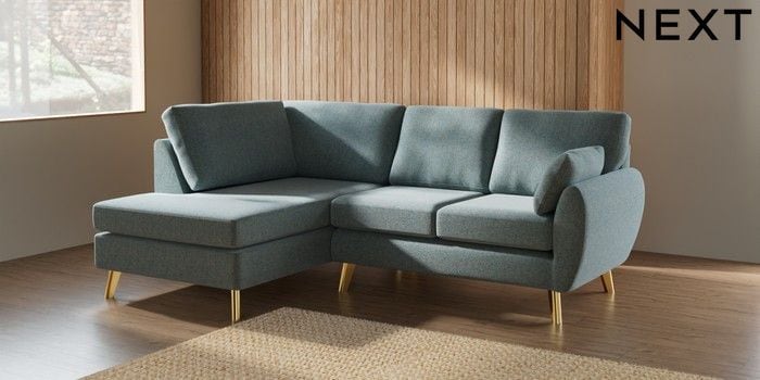 7.3.1 Buy Wilson Medium Corner Chaise - Left Hand Chunky Marl Mid Blue Metal Tapered - Gold from the Next UK online shop Click here to use our accessible website