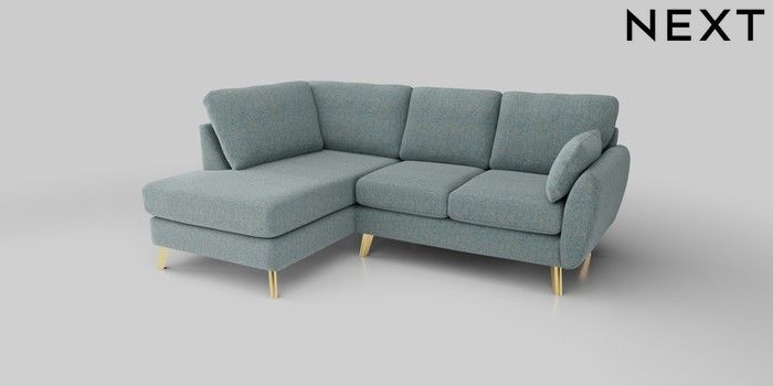 6.12.1 Buy Wilson Medium Corner Chaise - Left Hand Chunky Marl Mid Blue Metal Tapered - Gold from the Next UK online shop Click here to use our accessible website