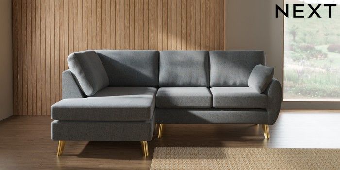 7.3.1 Buy Wilson Medium Corner Chaise - Left Hand Chunky Marl Mid Grey Metal Tapered - Gold from the Next UK online shop