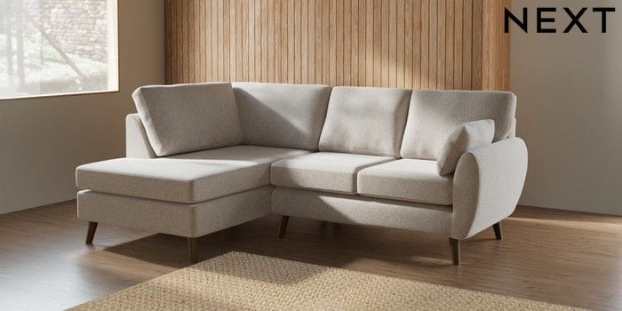 7.2.10 Buy Wilson Medium Corner Chaise - Left Hand Chunky Marl Oyster Retro Tapered - Mid from the Next UK online shop Click here to use our accessible website