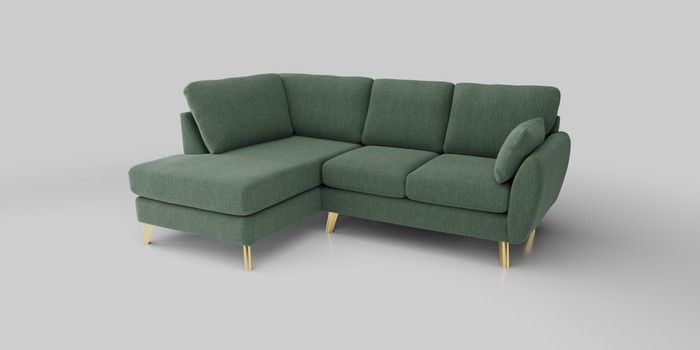 6.12.1 Buy Wilson Medium Corner Chaise - Left Hand Chunky Texture Mid Forest Green Metal Tapered - Gold from the Next UK online shop Click here to use our accessible website
