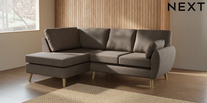 7.2.10 Buy Wilson Medium Corner Chaise - Left Hand Chunky Weave Dark Natural Retro Tapered - Light from the Next UK online shop Click here to use our accessible website