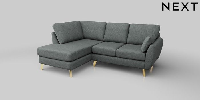 6.12.1 Buy Wilson Medium Corner Chaise - Left Hand Chunky Weave Mid Grey Metal Tapered - Gold from the Next UK online shop Click here to use our accessible website