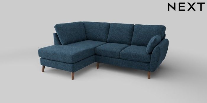 6.12.1 Buy Wilson Medium Corner Chaise - Left Hand Cotswold Chenille Dark Blue Retro Tapered - Mid from the Next UK online shop Click here to use our accessible website