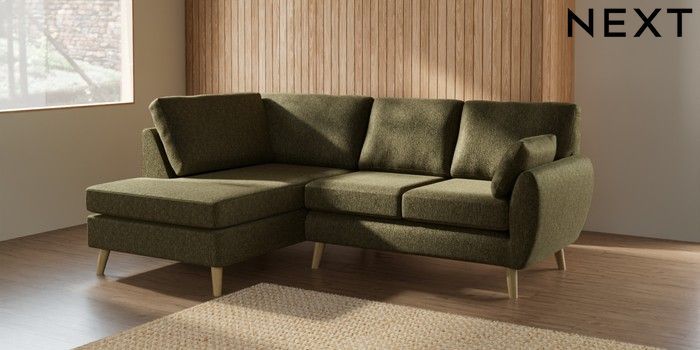 7.2.10 Buy Wilson Medium Corner Chaise - Left Hand Cotswold Chenille Dark Green Retro Tapered - Light from the Next UK online shop Click here to use our accessible website