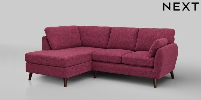 6.12.1 Buy Wilson Medium Corner Chaise - Left Hand Cotswold Chenille Dark Raspberry Pink Retro Tapered - Dark Brown from the Next UK online shop Click here to use our accessible website