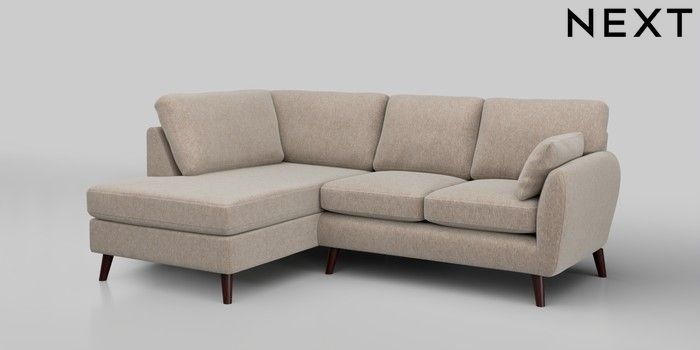 6.12.1 Buy Wilson Medium Corner Chaise - Left Hand Cotswold Chenille Light Natural Retro Tapered - Dark Brown from the Next UK online shop Click here to use our accessible website