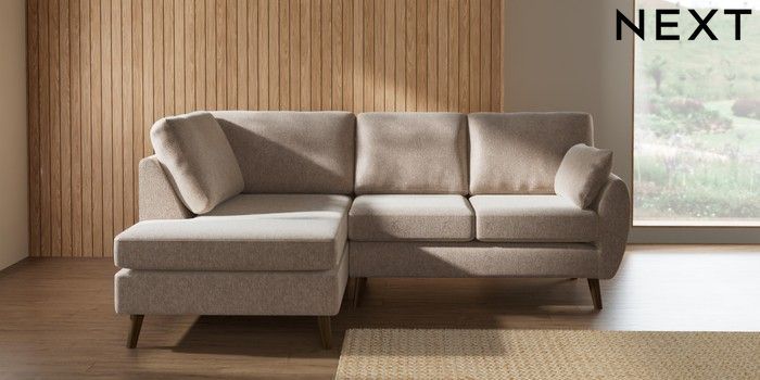7.3.1 Buy Wilson Medium Corner Chaise - Left Hand Cotswold Chenille Light Natural Retro Tapered - Mid from the Next UK online shop