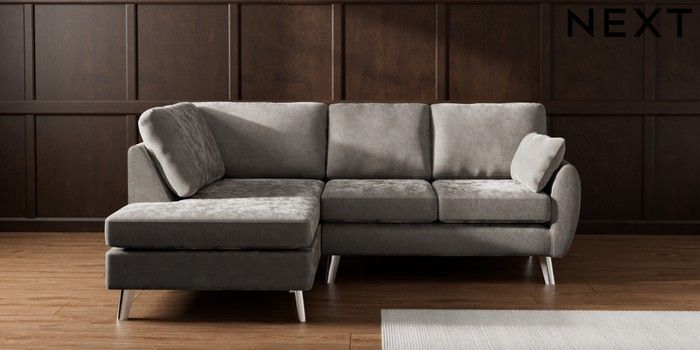 7.3.1 Buy Wilson Medium Corner Chaise - Left Hand Distressed Velour French Grey Metal Tapered - Chrome from the Next UK online shop