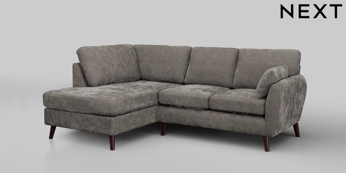 6.12.1 Buy Wilson Medium Corner Chaise - Left Hand Distressed Velour French Grey Retro Tapered - Dark Brown from the Next UK online shop Click here to use our accessible website