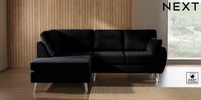7.3.1 Buy Wilson Medium Corner Chaise - Left Hand Fine Chenille Easy Clean Black Metal Tapered - Chrome from the Next UK online shop