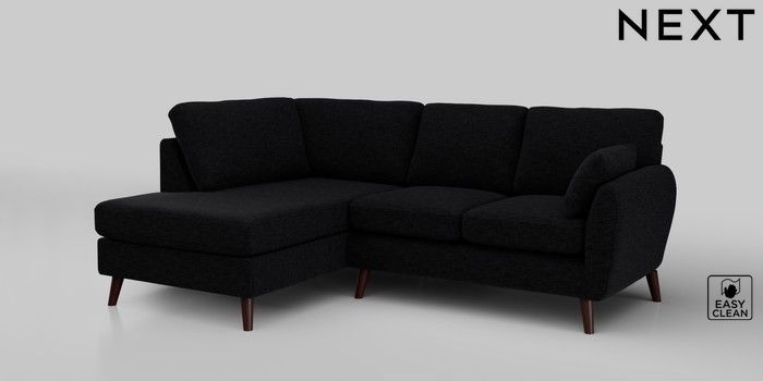6.12.1 Buy Wilson Medium Corner Chaise - Left Hand Fine Chenille Easy Clean Black Retro Tapered - Dark Brown from the Next UK online shop Click here to use our accessible website