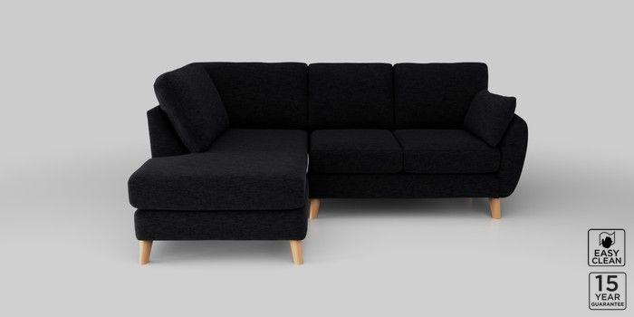 6.11.4 Buy Wilson Medium Corner Chaise - Left Hand Fine Chenille Easy Clean Black Retro Tapered - Light from the Next UK online shop Click here to use our accessible website