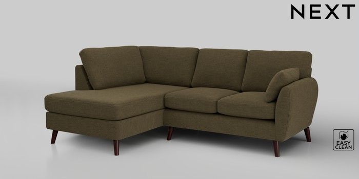 6.12.1 Buy Wilson Medium Corner Chaise - Left Hand Fine Chenille Easy Clean Dark Moss Green Retro Tapered - Dark Brown from the Next UK online shop Click here to use our accessible website
