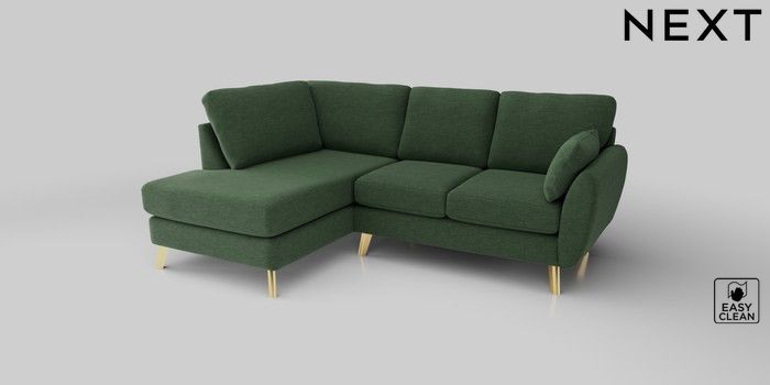 6.12.1 Buy Wilson Medium Corner Chaise - Left Hand Fine Chenille Easy Clean Mid Khaki Green Metal Tapered - Gold from the Next UK online shop Click here to use our accessible website