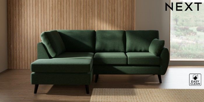 7.3.1 Buy Wilson Medium Corner Chaise - Left Hand Fine Chenille Easy Clean Mid Khaki Green Retro Tapered - Dark from the Next UK online shop