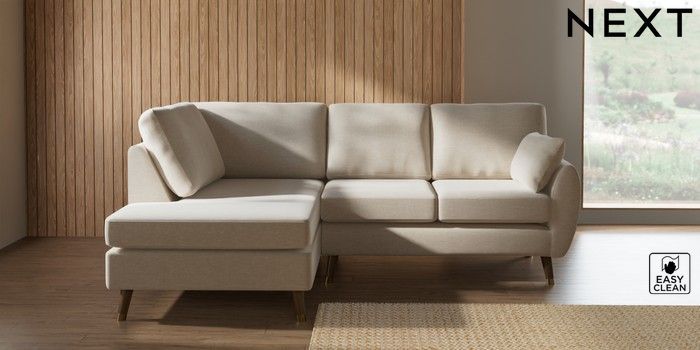 7.3.1 Buy Wilson Medium Corner Chaise - Left Hand Fine Chenille Easy Clean Oyster Low Retro Tapered Metal Cap - Mid from the Next UK online shop