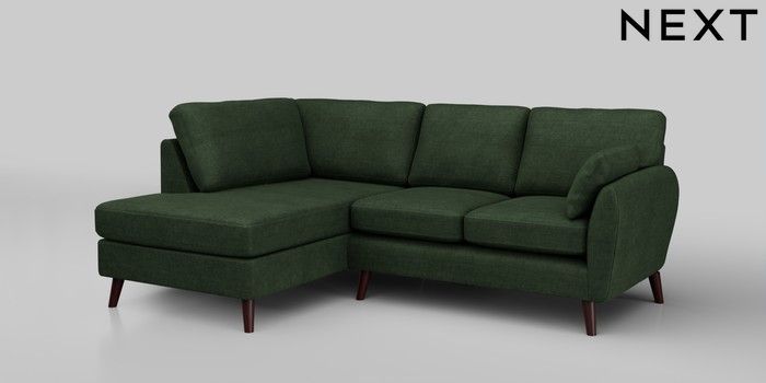 6.12.1 Buy Wilson Medium Corner Chaise - Left Hand Luxe Chenille Dark Green Retro Tapered - Dark Brown from the Next UK online shop Click here to use our accessible website
