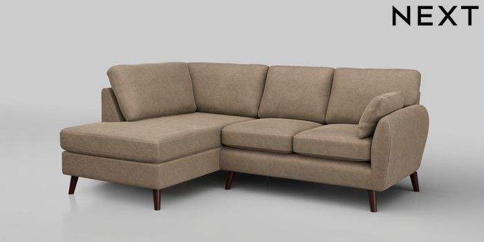 6.12.1 Buy Wilson Medium Corner Chaise - Left Hand Luxe Chenille Mid Camel Beige Retro Tapered - Dark Brown from the Next UK online shop Click here to use our accessible website