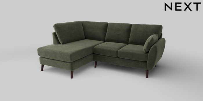 6.12.1 Buy Wilson Medium Corner Chaise - Left Hand Luxe Chenille Mid Green Retro Tapered - Dark Brown from the Next UK online shop Click here to use our accessible website