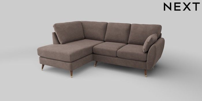 6.12.1 Buy Wilson Medium Corner Chaise - Left Hand Luxe Chenille Mink Brown Low Retro Tapered Metal Cap - Mid from the Next UK online shop Click here to use our accessible website