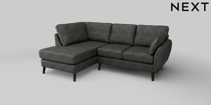 6.12.1 Buy Wilson Medium Corner Chaise - Left Hand Monza Faux Leather Easy Clean Dark Grey Retro Tapered - Dark from the Next UK online shop Click here to use our accessible website