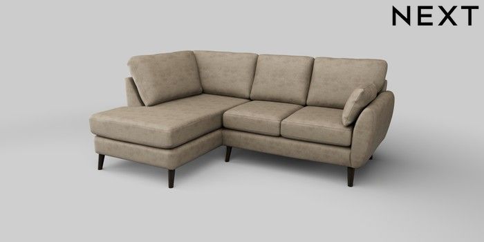 6.12.1 Buy Wilson Medium Corner Chaise - Left Hand Monza Faux Leather Easy Clean Mink Brown Retro Tapered - Dark from the Next UK online shop Click here to use our accessible website