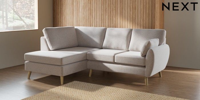 7.2.6 Buy Wilson Medium Corner Chaise - Left Hand Multi Weave Oyster Retro Tapered - Light from the Next UK online shop Click here to use our accessible website