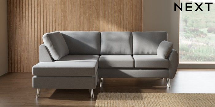 7.3.1 Buy Wilson Medium Corner Chaise - Left Hand Natural Mix Light Grey Metal Tapered - Chrome from the Next UK online shop