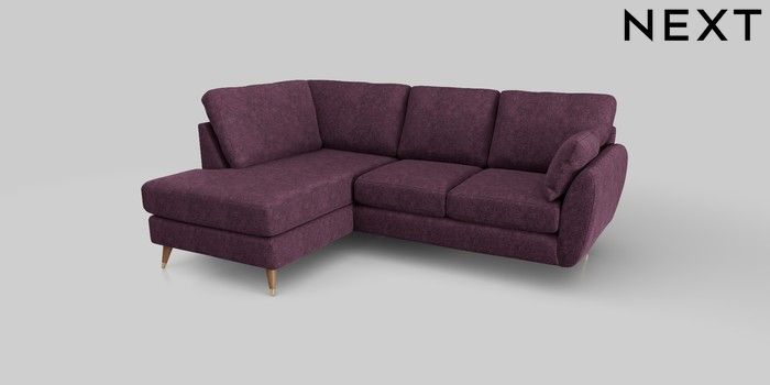 6.12.1 Buy Wilson Medium Corner Chaise - Left Hand Plush Chenille Dark Plum Purple Low Retro Tapered Metal Cap - Mid from the Next UK online shop Click here to use our accessible website