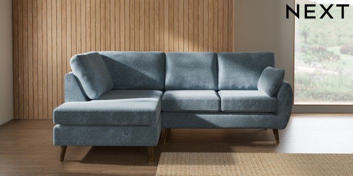 7.3.1 Buy Wilson Medium Corner Chaise - Left Hand Plush Chenille Light Blue Low Retro Tapered Metal Cap - Mid from the Next UK online shop