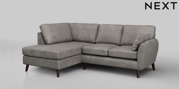 6.12.1 Buy Wilson Medium Corner Chaise - Left Hand Plush Chenille Light Grey Retro Tapered - Dark Brown from the Next UK online shop Click here to use our accessible website