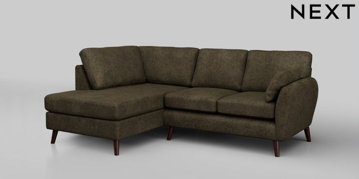 6.12.1 Buy Wilson Medium Corner Chaise - Left Hand Plush Chenille Moss Green Retro Tapered - Dark Brown from the Next UK online shop Click here to use our accessible website