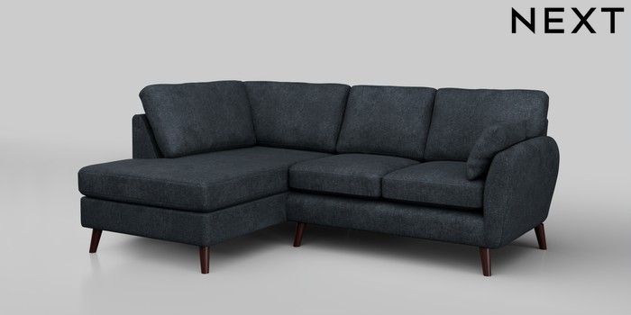 6.12.1 Buy Wilson Medium Corner Chaise - Left Hand Plush Chenille Slate Blue Retro Tapered - Dark Brown from the Next UK online shop Click here to use our accessible website