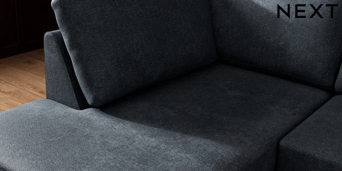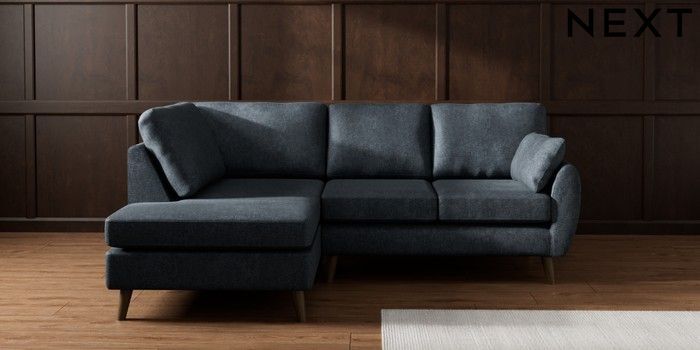 7.3.1 Buy Wilson Medium Corner Chaise - Left Hand Plush Chenille Slate Blue Retro Tapered - Mid from the Next UK online shop