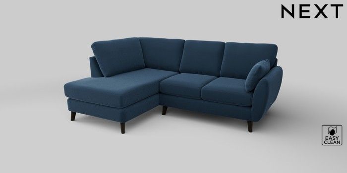 6.12.13 Buy Wilson Medium Corner Chaise - Left Hand Plush Velvet Easy Clean Airforce Blue Retro Tapered - Dark from the Next UK online shop Click here to use our accessible website