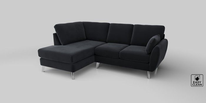 6.12.1 Buy Wilson Medium Corner Chaise - Left Hand Plush Velvet Easy Clean Charcoal Grey Metal Tapered - Chrome from the Next UK online shop Click here to use our accessible website