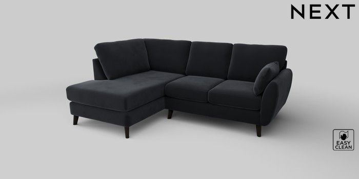 6.12.13 Buy Wilson Medium Corner Chaise - Left Hand Plush Velvet Easy Clean Charcoal Grey Retro Tapered - Dark from the Next UK online shop Click here to use our accessible website