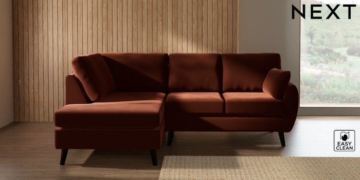 7.3.1 Buy Wilson Medium Corner Chaise - Left Hand Plush Velvet Easy Clean Ginger Orange Retro Tapered - Dark from the Next UK online shop